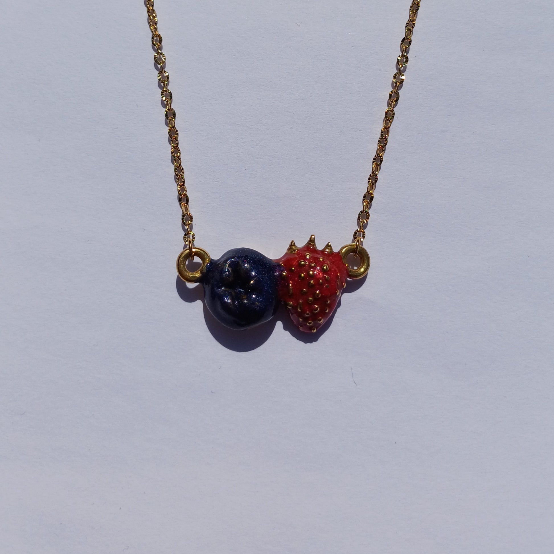 Portez un souffle de fraîcheur fruitée autour du cou avec ce collier doré orné de deux pendentifs gourmands : une fraise juteuse et une petite myrtille brillante, délicatement suspendues côte à côte. Un bijou joyeux, coloré et raffiné qui célèbre la douceur de l’été avec une touche de fantaisie chic.